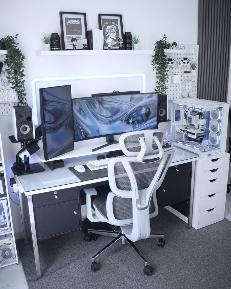 White desk – Your canvas. Prioritize stability and size over fancy features.