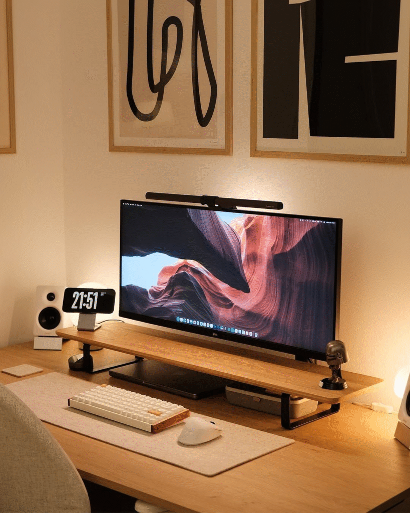Bias lighting – LED strips behind your monitor in warm white create ambiance and reduce eye strain.